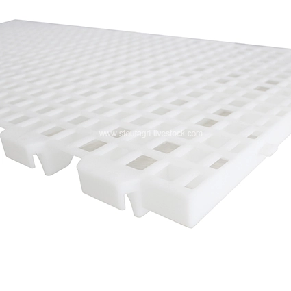 تتميز أرضيات الشرائح البلاستيكية بالملابس الممتازة ومقاومة التآكل. يمكن أن تقاوم الآثار المسببة للتآكل لنفايات الدواجن, الحفاظ على سلامتها الهيكلية ومظهرها مع مرور الوقت. بالإضافة إلى ذلك, يعزز التصميم إفراز النفايات السهل, المساعدة في الحفاظ على منطقة التكاثر نظيفة وصحية.