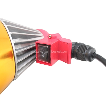 - Interruptor ajustable: El botón del interruptor tiene tres niveles.: alto, apagado, y bajo. Esto le permite controlar fácilmente la producción de calor según las necesidades de su ganado., proporcionando comodidad y energía – eficiencia.