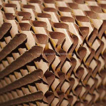 Specially engineered cellulose cooling pads (PAD7090/PAD7060 series) create optimal evaporative cooling when paired with exhaust fans in poultry houses or swine farming facilities. The pads are made from high – quality corrugated paper with special treatment, it has excellent water – absorption properties. When combined with a fan in a longitudinal ventilation system, it can effectively lower the indoor temperature of livestock shelters.