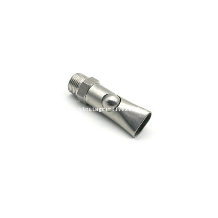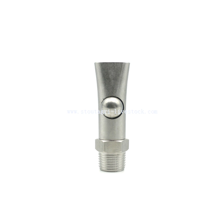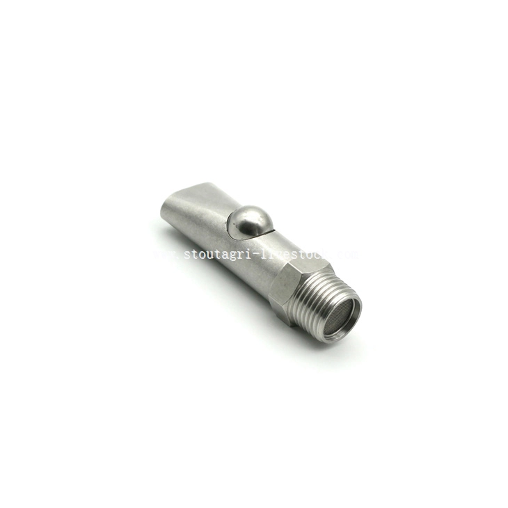 专为成年猪设计, 这款高流量饮用阀采用医用级不锈钢结构,可承受多年的持续使用. The smart flow control system provides ample water volume without creating messy pen conditions. Farmers appreciate the balanced activation pressure that accommodates both forceful boars and careful sows.