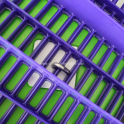 料盘底部的金属钩可以轻松安全地安装在塑料板条上. 这个用户 – 友好的设计使农民可以方便地设置和维护仔猪饲养区.